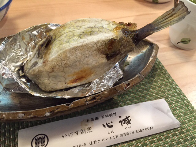 はこふぐというふぐの腹を切って、中に小ネギ入りの甘味噌を入れて焼き、身と混ぜて食べる五島の珍味です。 ふぐのワタの甘味で、濃厚ですご〜く美味しい。私は、ご飯と共に頂きました。一生忘れない絶品でした。