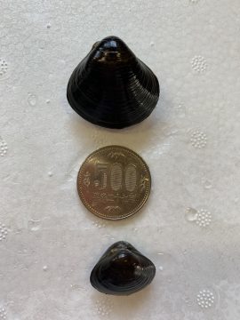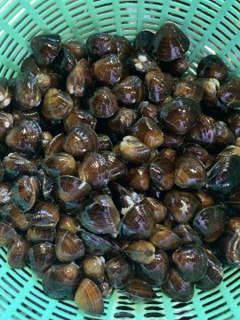 宮城県石巻市の北上の「べっこうしじみ」が、大内さんから送られてきました! 島根県宍道湖や青森県十三湖のしじみも有名ですが、この「べっこうしじみ」は、味は言うまでもなく抜群!ツヤツヤとしたべっこう色とその大きさにびっくりです。 なんと500円玉よりも大きいんです。小さいものでも、通常のしじみの2〜3まわりの大きさ。ただ今、砂抜き中なので、夜の味噌汁が楽しみです。 大内さん、いつもありがとうございます。お返し、期待しててね!