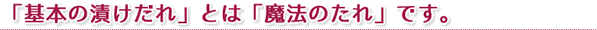 長年、白醤油やみりんなどの素材を吟味し、配合を考えた私の自信の「基本の漬けだれ」~「魔法のたれ」。